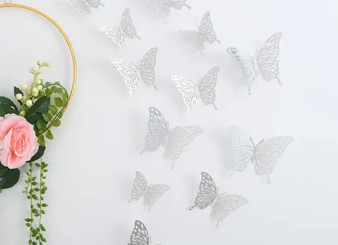 3. Цвет. Богатая природная цветовая палитра находит свое отражение и в создании искусственных мотыльков. Но такие модели могут быть и неестественных оттенков – золотистые, серебристые. Они нужны, чтобы подчеркнуть праздничность обстановки.